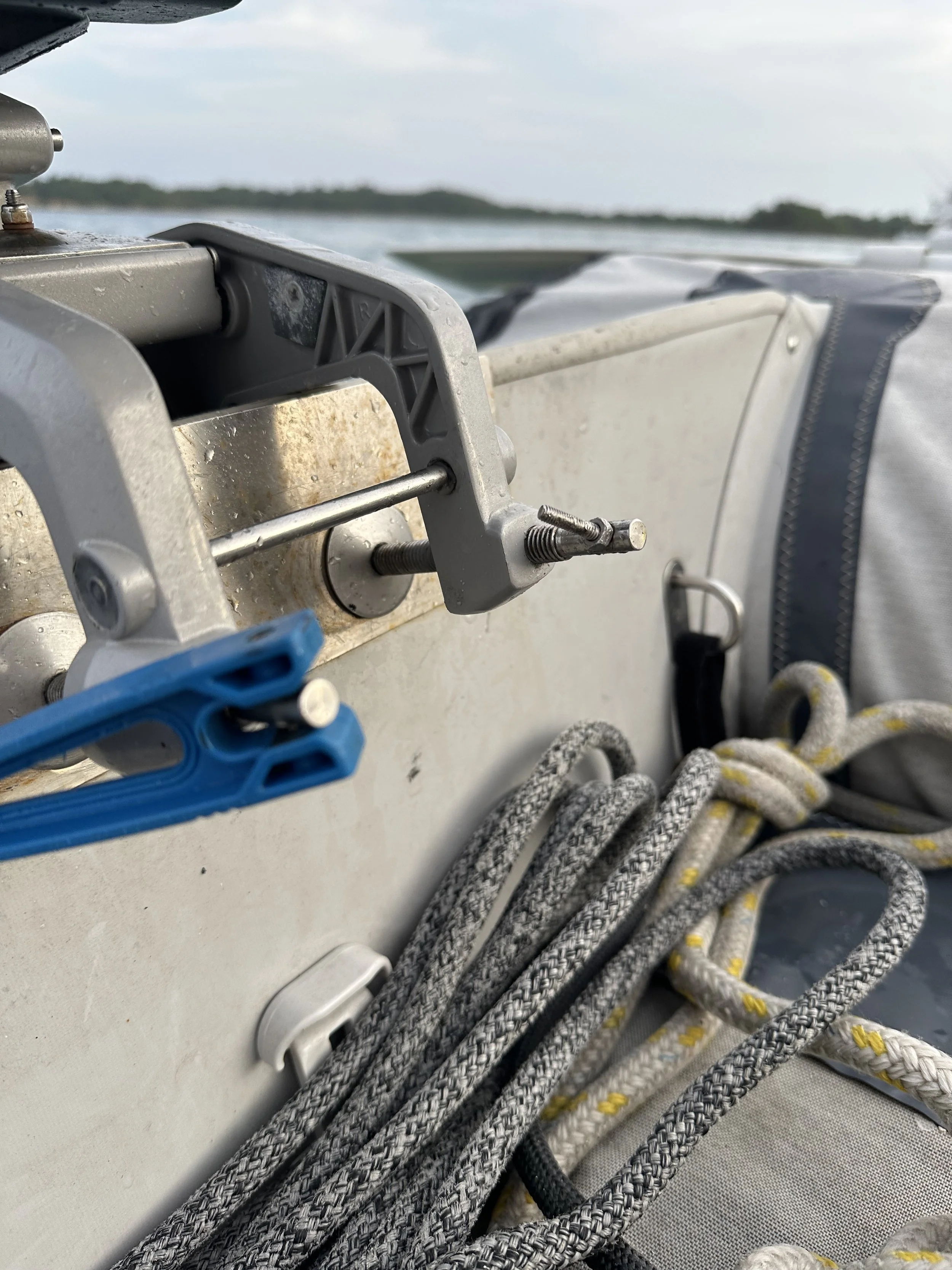 Otherwise, it generally shows signs of wear and tear. The rubber handle on the tiller has now (after 6 years) come loose and needs to be re-glued, and one of the plastic parts for screwing the motor in place was so tight that it is now broken. Admittedly, we don't treat the motor gently; it is exposed to sun and salt water every day, but it should actually be designed for exactly that.